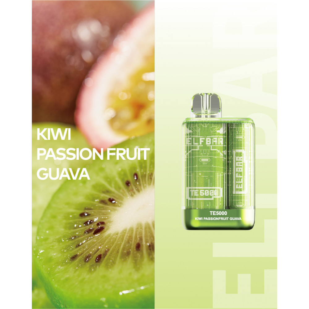 Elf Bar видыTE 5000 Elf Bar вкусыКиви Маракуйя Гуава Elf Bar количество в блоке10 шт
