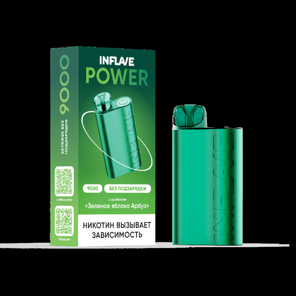 Электронная сигарета INFLAVE POWER 9000 затяжек Зеленое Яблоко Арбуз - купить в Москве